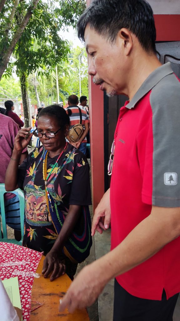 “Bhakti Sosial pembagian kaca mata baca gratis ini melalui proses pendaftaran, pemeriksaan kadar kondisi mata yang menyesuaikan dengan sample kacamata yang telah disiapkan,” kata Bpk Anton Fatubun sebagai koordinator relawan dalam penjelasannya.